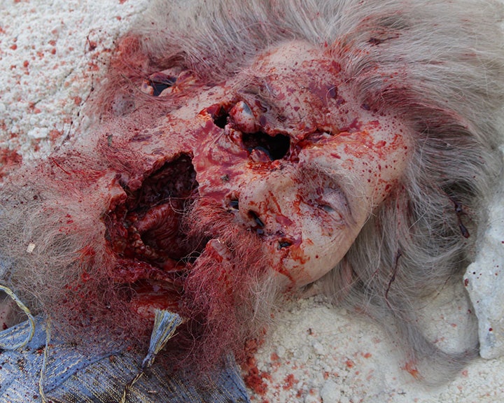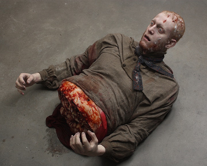 Full size articulated dummy of actor with shotgun wound for "The Terror"