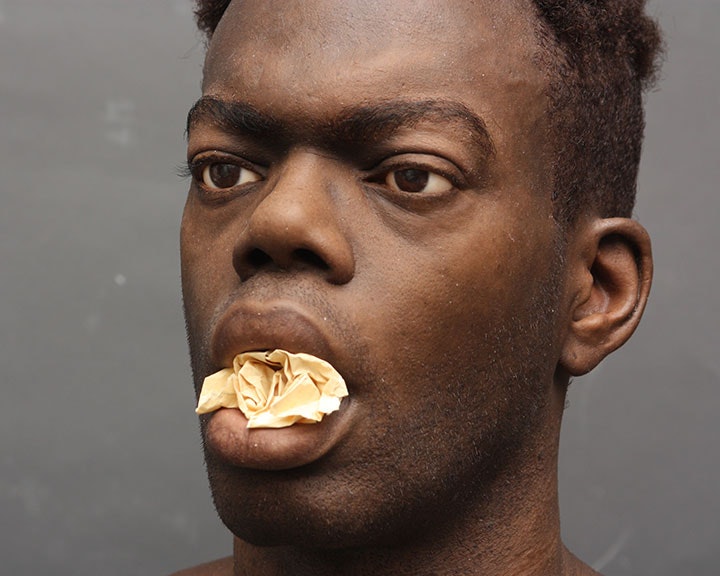 Silicone dummy head with openable lips and eyes for mortuary scene in "The Rite".