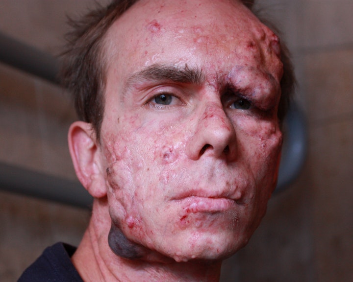 Gelatine burnt injury make-up on Victor Rasuk for "Stop Loss".