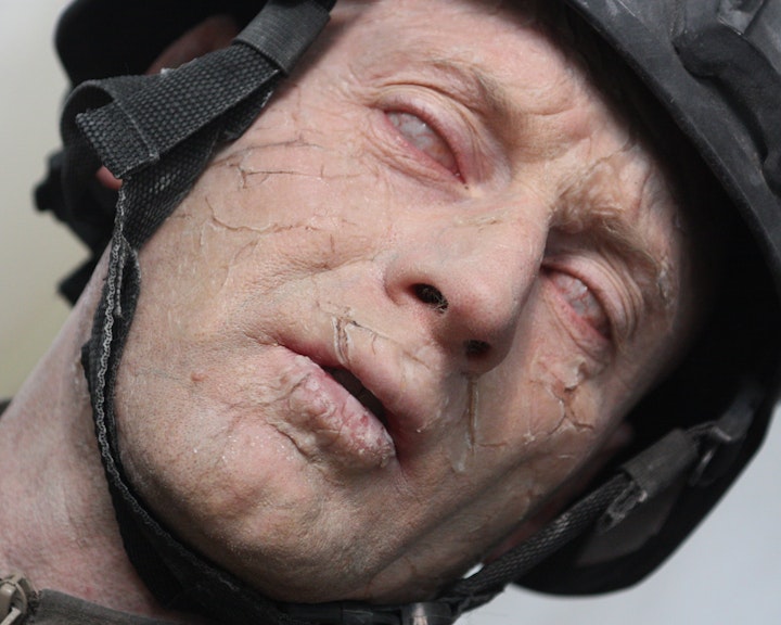 Silicone prosthetic make-up with heavy bleeding effect for TV series "Birdsong".