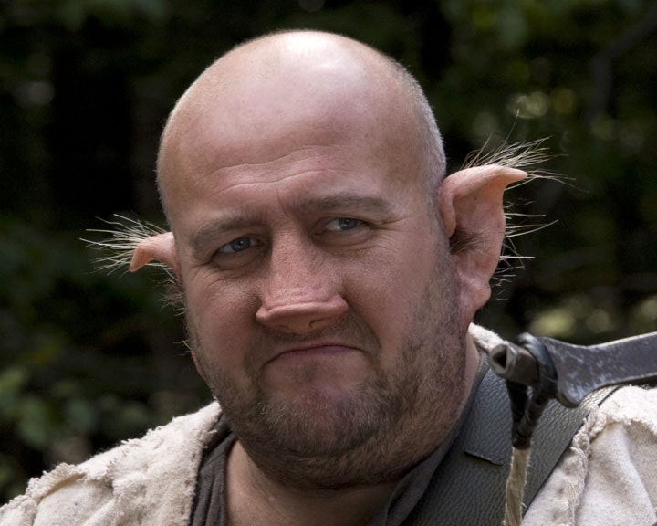 Foam latex pig-nose and silicone ears with punched hair for British TV series, Krod Mandoon.