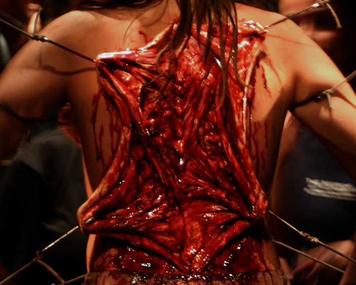 Skinned back prosthetic make-up on Laura Breckenridge for the diorama scene in "Amusement".