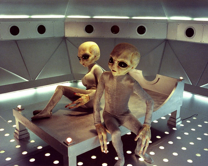 Polyfoam alien masks with see-through lighting eyes for a Centraal Beheer commercial.