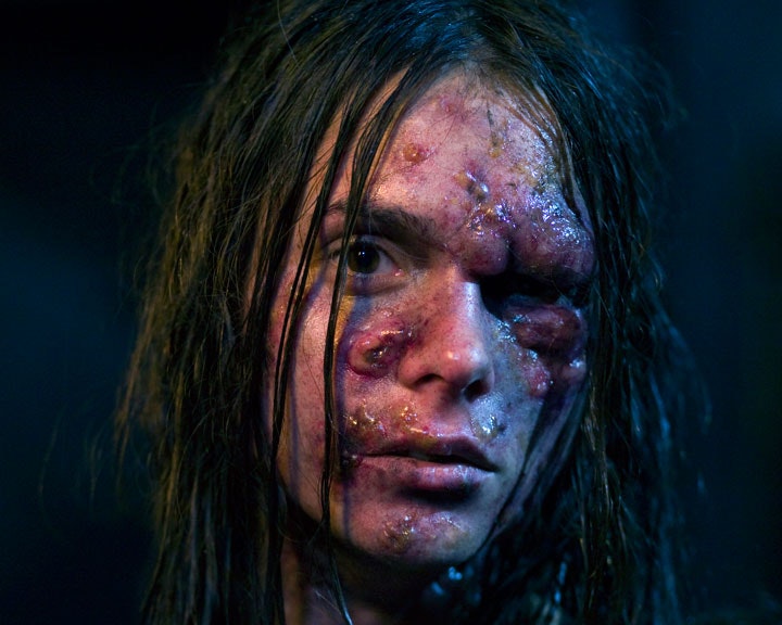 Foam latex plague prosthetic make-up with punched hair for "Season of the Witch".