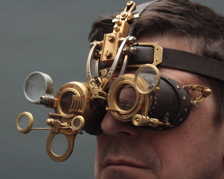 1,5 diameter polystyrene eye with mechanically movable metal & plastic works for British TV series, Krod Mandoon.