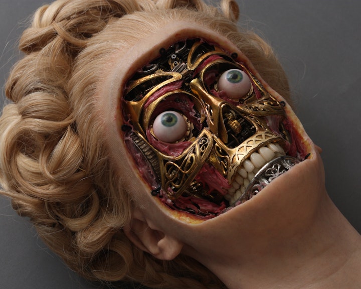 Silicone replica of actress with removable face and internal clockwork mechanism for "Emerald City"