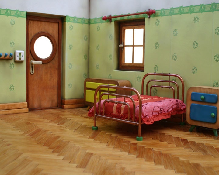 Stylized miniature room of the animation character "Mekk Elek" for a wallpaint commercial.