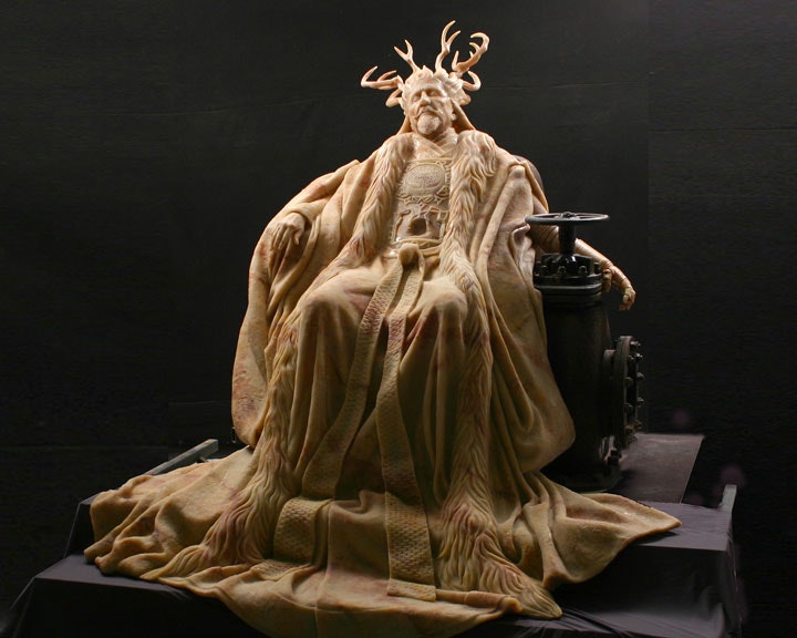 Lifesize fiberglass statue of the Roy Dotrice with breakable chest for "Hellboy 2".
