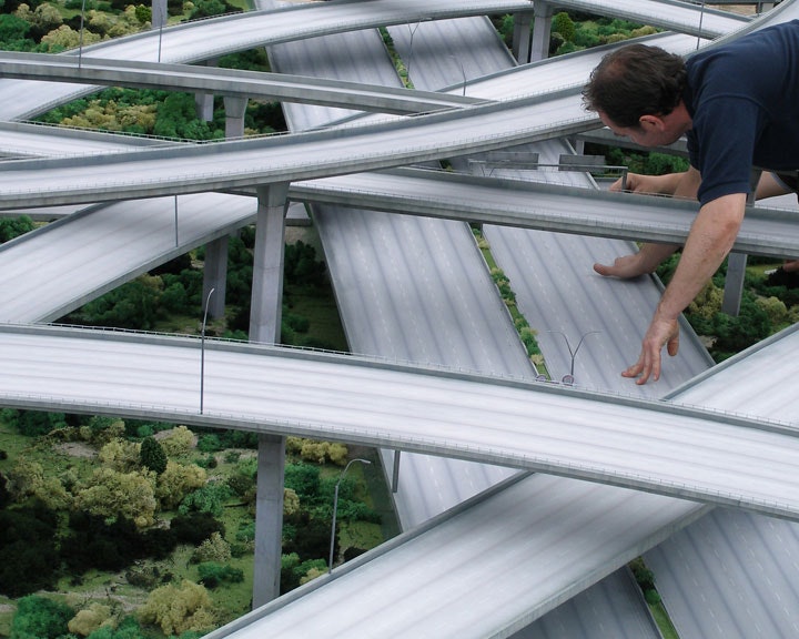 "8 meter long miniature of a highway intersection for a dolly shot in a "BMW" TV commercial.