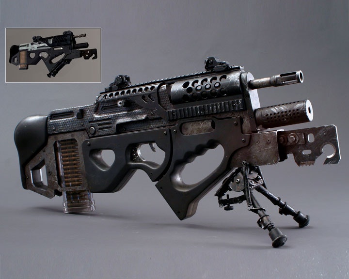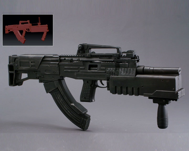 Fake machine gun fabricated of plastic and iron for "Ghost Recon video game" commercial.