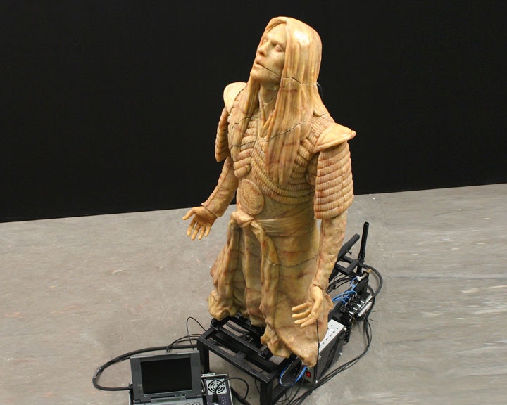 Lifesize fiberglass animatronic statue of Luke Goss with computer controlled collapsable pieces for "Hellboy 2".