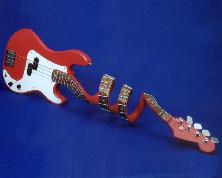 A curled up model of a guitar for a "Matavnet" TV commercial.